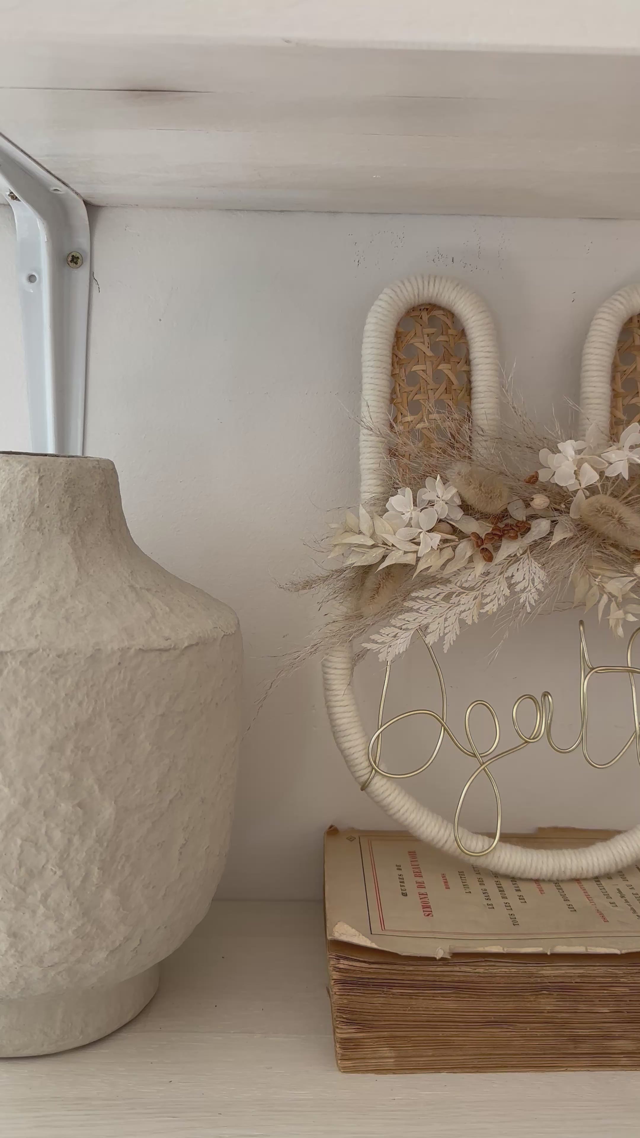 Cette décoration murale en laine et matériaux naturels est soigneusement confectionnée à la main avec dévotion par notre créatrice Sophie. Chaque pièce est unique et porte en elle la symbolique et l'énergie réconfortante du lapin.